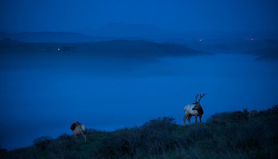 Point Reyes National Seashore isn’t that far north of San Francisco. In fact, the northern suburbs of the city can be seen below this ridge where elk often graze. It was well past sunset when I took this picture and I had to crank my ISO up to 3200 to have enough light to record the scene. A bed of fog (of course, it’s San Francisco) settled into the valley below as the elk began to wind down another day.