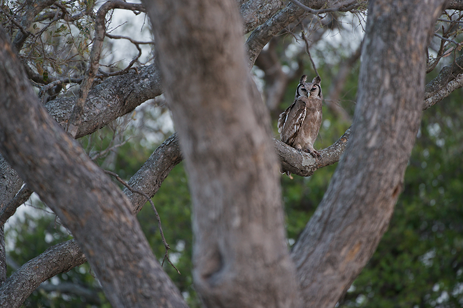 The Verreaux’s eagle owl is the one owl that I’ve seen the most of in my six trips to Africa. That being said, it’s still a fairly rare sighting. It’s the third heaviest owl in the world and fourth longest (just behind the great gray owl). I’ve always liked the pink eyelids that make the Verreaux’s eagle owl look like it’s wearing colorful eye shadow. Nikon D800 with Nikkor 200-400mm lens (at 400mm) ISO 800, f/4 at 1/80th of a second