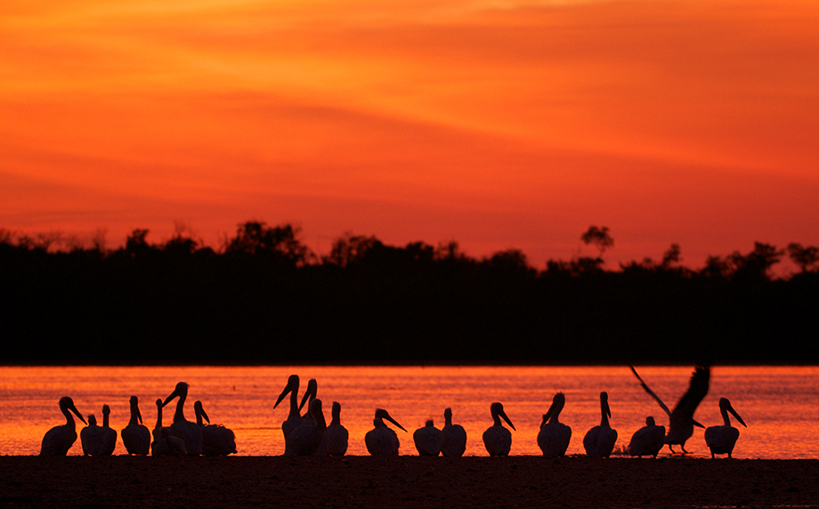 I took this one at the end of the day in Ding Darling National Wildlife Refuge on Sanibel Island in Florida. Ding Darling is world famous for its birds. I’ve been there many times and it never seems to disappoint, although I’m never quite sure what I’m going to see. On this particular evening, it was white pelicans. They were settling in for the night on a small sandbar in the middle of the bay. I got the camera down low in order to silhouette the pelicans against the sky’s red/orange reflection in the water. Nikon D300 with Nikkor 200-400mm lens (at 200mm) ISO 800, f/4 at 1/125th of a second
