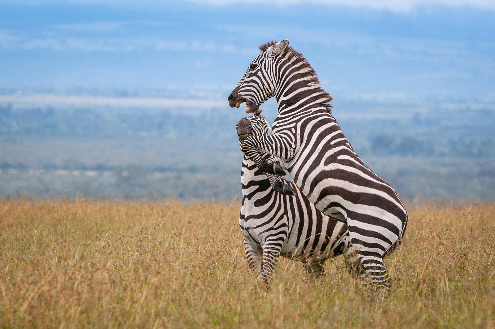 These two male zebras were going at each other during rutting season, trying to prove dominance for mating rights. Photographed at Ol Pajeta Conservancy in Laikipia, Kenya. Nikon D300 with Nikkor 200-400mm lens (at 400mm) ISO 400, f/6.3 at 1/800th of a second.